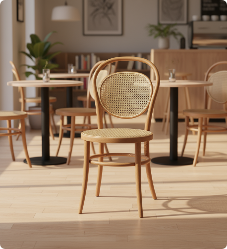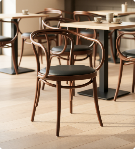 Nasza interpretacja legendarnego modelu krzesłanr 18 Michaela Thoneta. Eleganckie kształty Monet 18 czynią z niego idealny wybór do eleganckich kawiarni