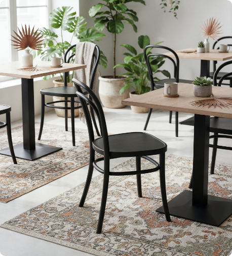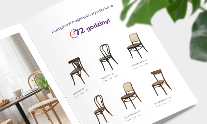 na idealne dopasowanie krzeseł do każdego projektu. Możesz skonfigurować wybrane modele, wybierając kolor wybarwienia drewna, tkaninę tapicerki, a nawet zdecydować się na eleganckie rattanowe siedzisko czy oparcie. W ten sposób każde wnętrze — czy to restauracja, czy kawiarnia — zyskuje unikalny, indywidualny charakter, bez konieczności kompromisów w zakresie najwyższej jakości i terminowości dostawy.