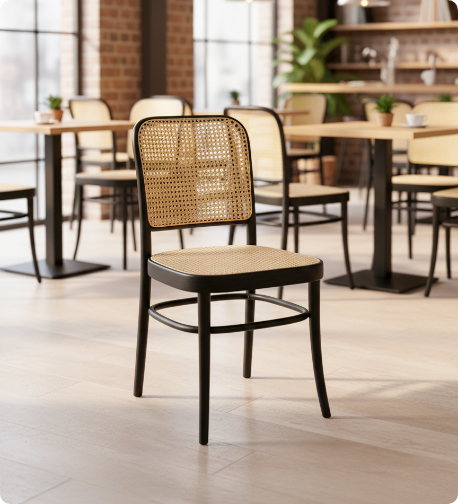 Inspiracja kultowym krzesłem numer 811 autorstwa Josefa Hoffmanna. Jego lekka, gięta konstrukcja z oparciem z plecionki wiedeńskiej doskonale wpisze się w potrzeby eleganckich restauracji i hoteli, a także wnętrz skandynawskich lub boho.Już od 699 zł netto