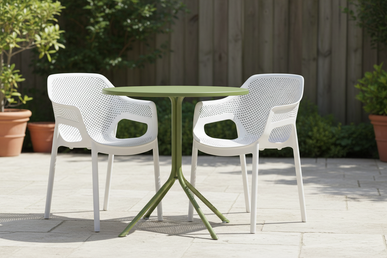 Plastikowe krzesło outdoorowe w kolorze białym, idealne do ogródków gastronomicznych. Wykonane z tworzyw odpornych na promieniowanie UV. Jednolita konstrukcja z podłokietnikami. Niska waga i możliwość sztaplowania.