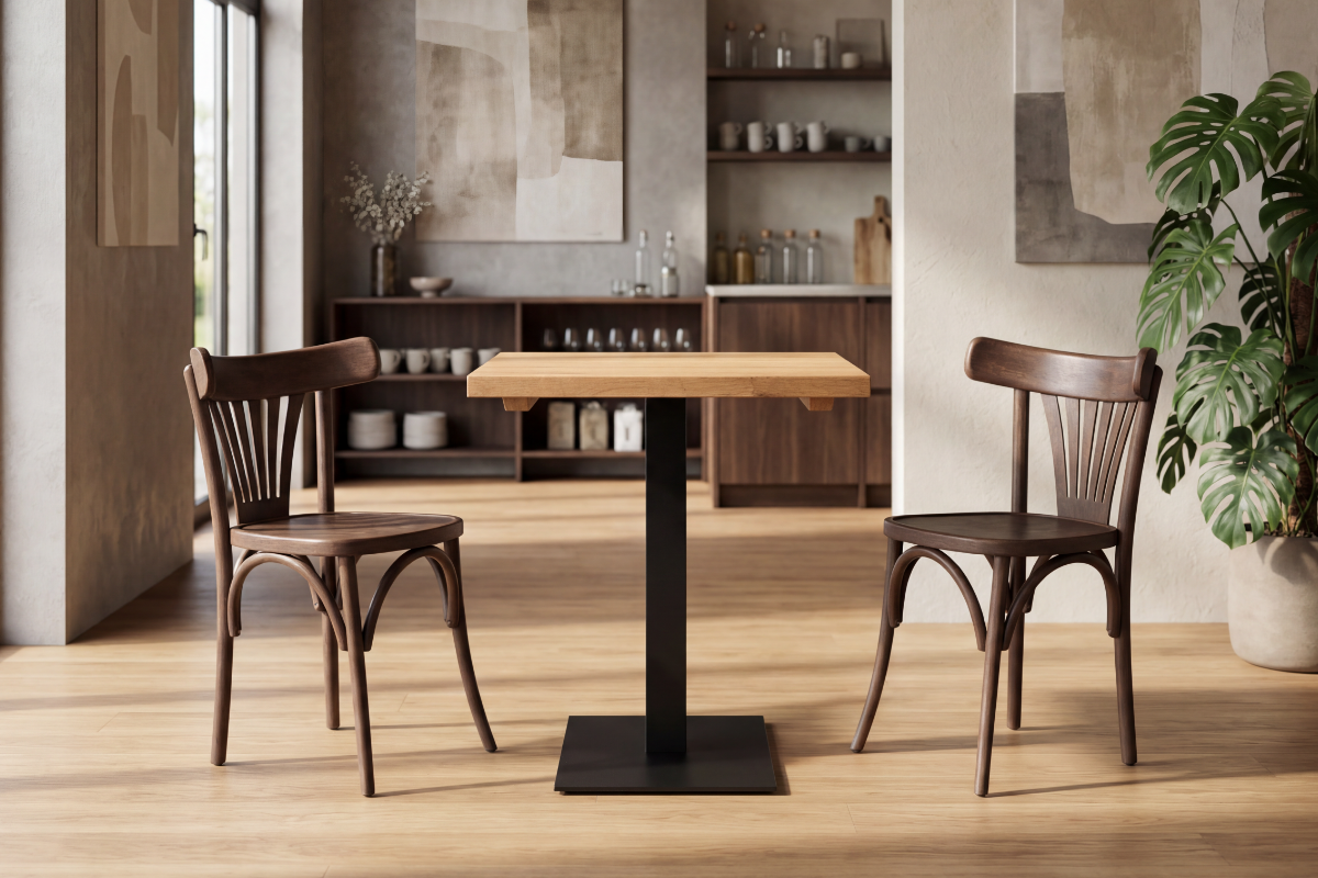 Krzesło gięte z certyfikowanego drewna bukowego FSC®. Klasyczna technika gięcia drewna. Lekka i trwała konstrukcja. Możliwość personalizacji koloru i tapicerki. Idealne do kawiarni i restauracji.