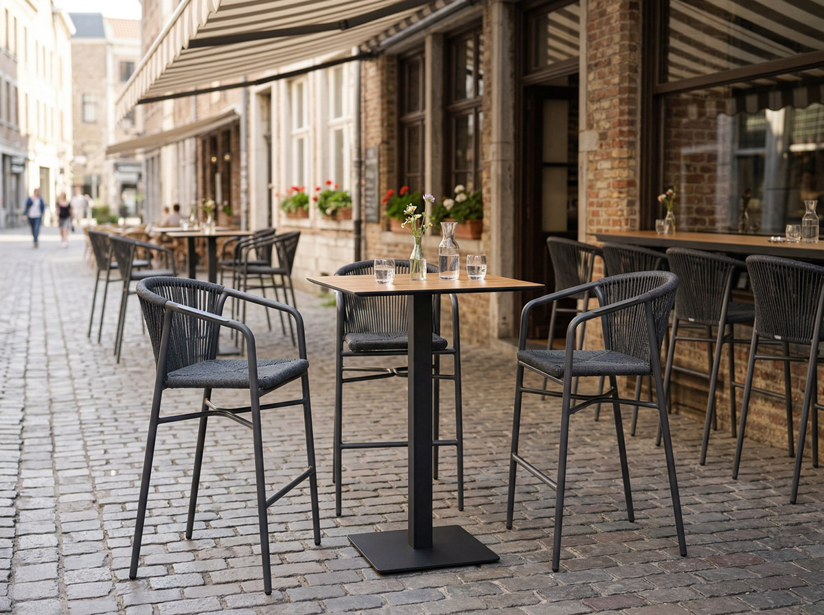Krzesło technorattanowe, wykonane z szybkoschnącego, nieodkształcającego się splotu Vortex. Aluminiowa rama o grubości ścianki 2 mm. Kolor antracytowy.
