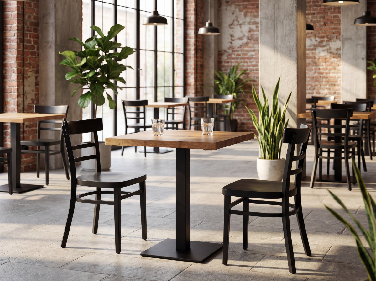 Minimalistyczne krzesło z giętego drewna bukowego, pochodzącego z certyfikowanych upraw FSC®. Klasyczna technika gięcia Michaela Thoneta. Kolor czarny.